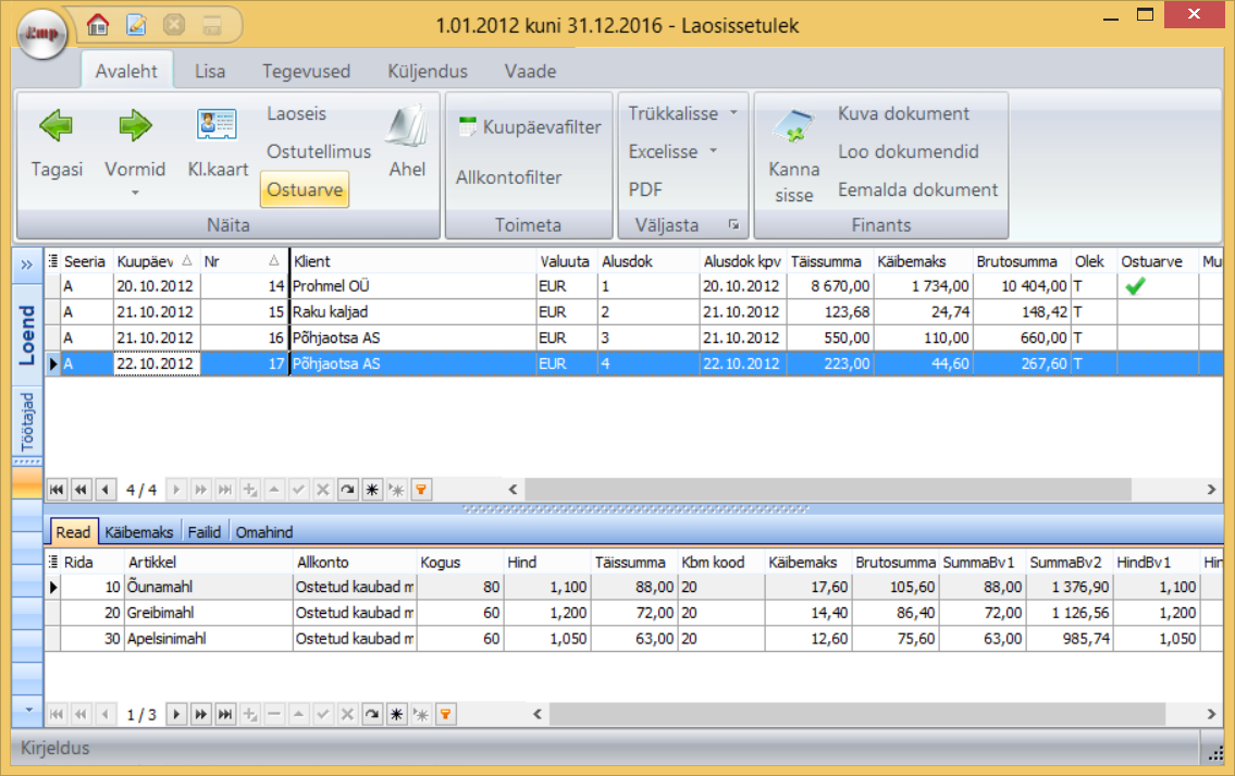 Laosissetulekute ja ostutellimuste sisestamisel saab kontrollida, kas dokumendil olevad hinnad vastavad hinnakirjas kokkulepitud hindadele.